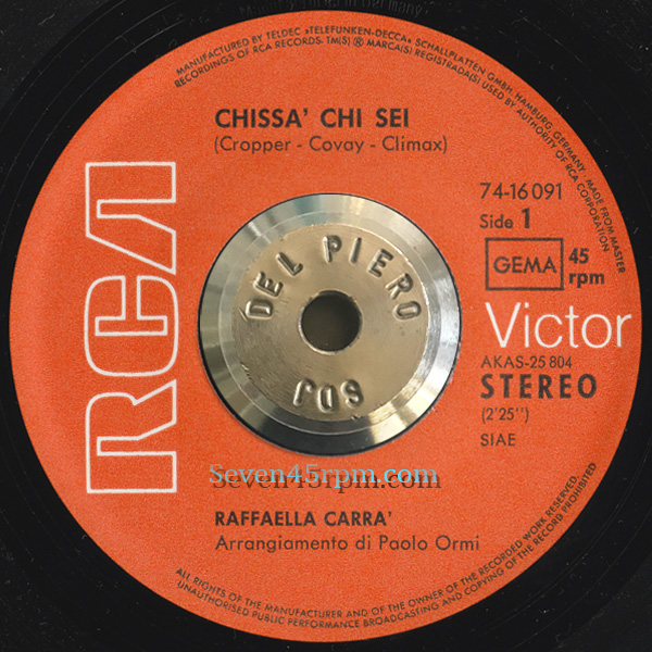 Carrà would release a good number of LP’s and singles in the seventies and did well out of them. Her first LP simply titled Raffaella, I’m just discovering is a rare beauty, and also includes this featured single, Chissa Chi Sei (Sookie Sookie). Many would recognise this immediately, as a cover of Steppenwolf’s “Sookie Sookie” from the first their self-titled studio album Steppenwolf, released in January 1968. And it likely is the most well know version. But in truth, the original version is from Don Covay & The Goodtimers, released in 1966 (later released in March 1967 just credited and released by Don Covay).