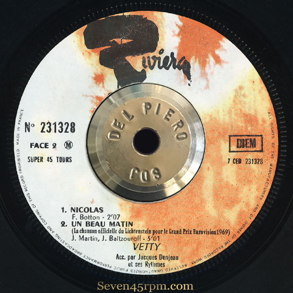 In 1969, she recorded her only solo release, a 4-track EP titled “Vetty” through Riviera. On it’s release, the better known track was the opener “Johnny (Si Tu Viens À Saint-Étienne)”, co written by TV – radio host, comedian Jacques Martin. I am not an expert by any means with the French language, but I feel like it’s a call out to idol Johnny Hallyday from the fan girl. “Johnny if you come to Saint-Etienneuh, for one evening, I want to be yours”. A quirky and fun tune, but c’mon the real reason to sought this EP out is because of NICOLAS! My goodness what a track! This is as good as go go beat gets, and Vetty’s unique vocal, makes this such a stand alone track. Yes her odd vocal style, somehow fits this dance floor mover, and because of it’s peculiarity and distinctiveness, it actually demands attention! I don’t play this out much, but when I do, it turns heads and is responsive!
