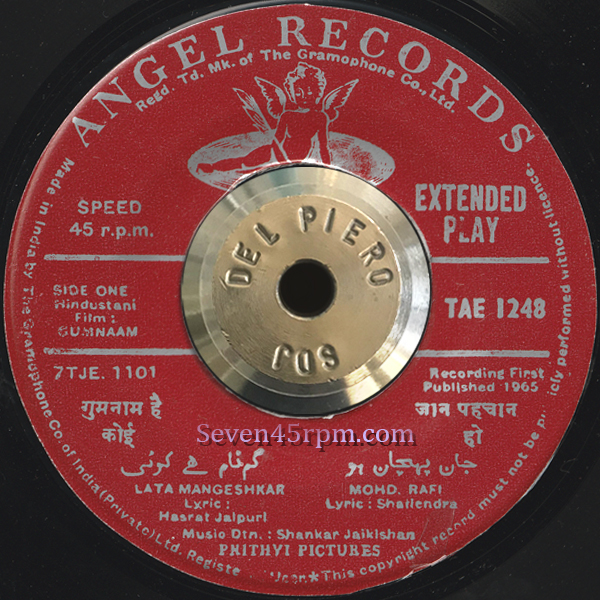 IN CLOSING – Indian vinyl is not the easiest to find, especially in good playing condition. But this is a must for 7 lovers and you are rewarded with Lata Mangeshkar’s Gumnaam Hai Koi, a lovely cover version Henry Mancini’s of Charade! I have to mention that you will find an edited cut down version on the EP. (I do find the 3 minute edit version very does the job adequately), so if you’re after the long play version that you know and love from the film cut, them the LP could be a good option, which does appear far more often on the market. Note that the LP cover pictured above is the repress cover from Angel Records that came out the a little later in the same year of ’65.