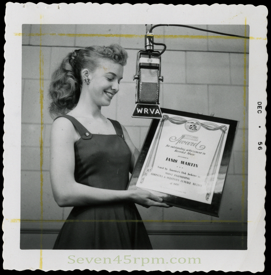 Two staff announcers at WRVA (the station that carried the barndance over the CBS network) were successful songwriters and wrote a song called Will You, Willyum (this was just at the birth of the fifties rockabilly music explosion). They asked Janis to sing it on the barndance for audience reaction, and also cut a demo tape of it which they passed on to their publisher in New York. When the demo tape arrived at Tannen Music in New York, the publisher not only accepted the song but rushed over to Steve Sholes of RCA Victor, so he could hear it. Sholes wanted to know who the vocalist was on the tape and called Richmond to find out. Janis was contacted and invited to Nashville to record the song on Victor Records.